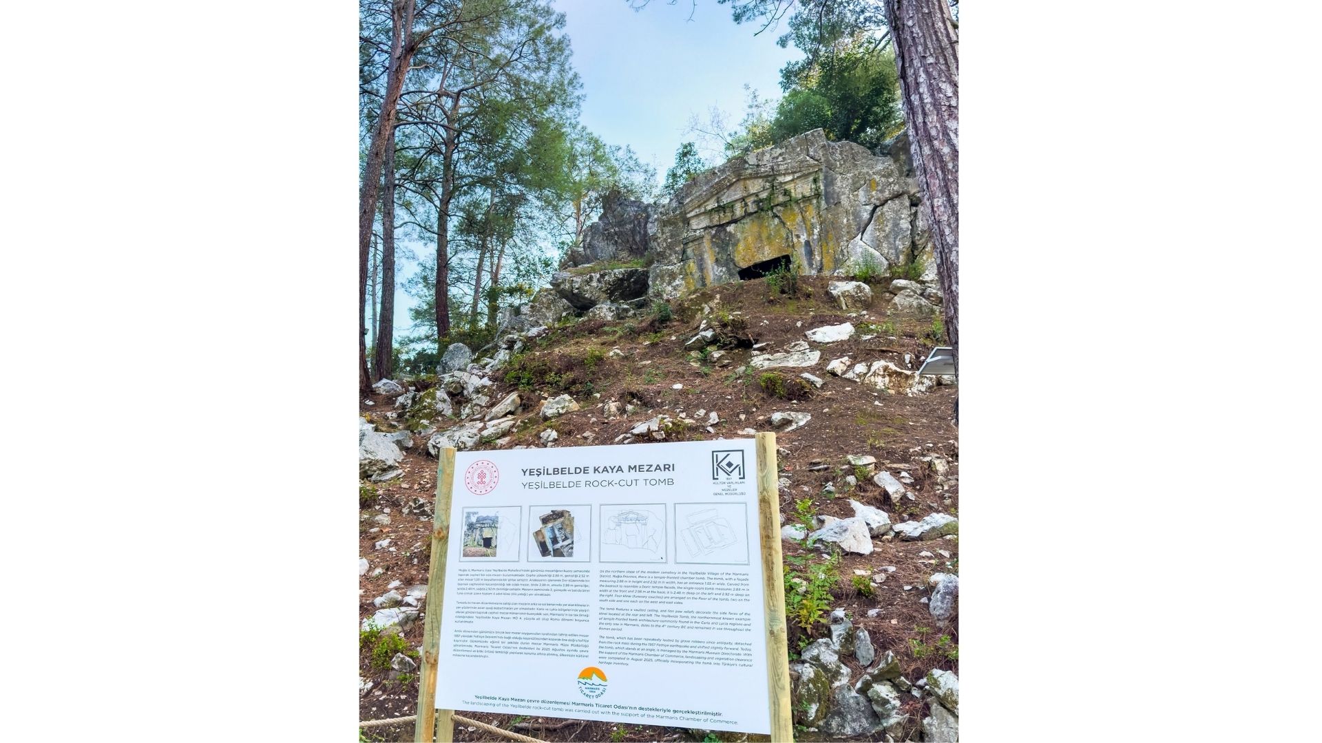 Marmaris’in önemli kültür varlıkları arasında yer alan, Yeşilbelde Mahallesi’ndeki 2400 yıl öncesine ait Kaya Mezarı, Marmaris Ticaret Odası ve Müze Müdürlüğü işbirliğinde gerçekleştirilen çalışmaların tamamlanmasının ardından koruma altına alındı.